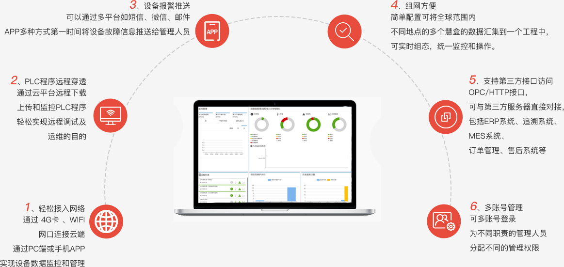 FBox連接現場設備中的 PLC和控制器,通過無線網絡將設備數據傳遞到遠程云服務器