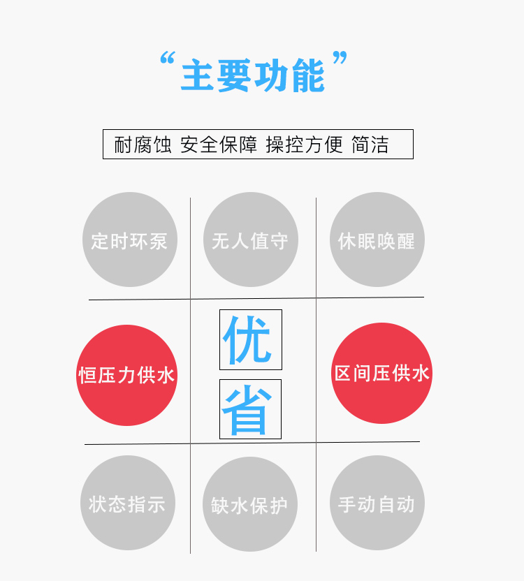 用水量減少時,頻率降低,水泵轉速減慢。這樣就保證了整個用戶管網隨時都有充足的水壓(與用戶設定的壓力一致)和水量(隨用戶的用水情況變化而變化)