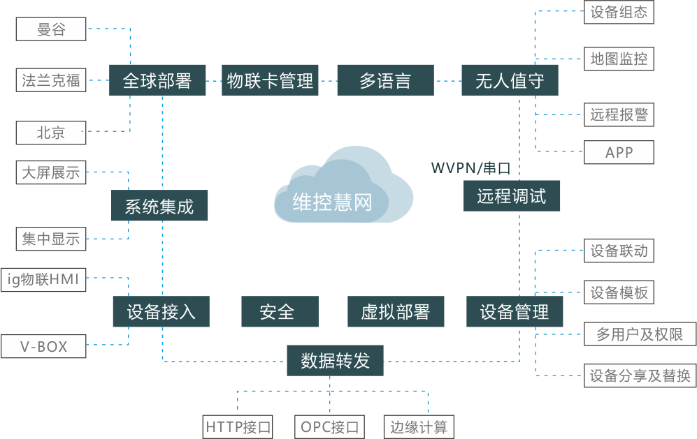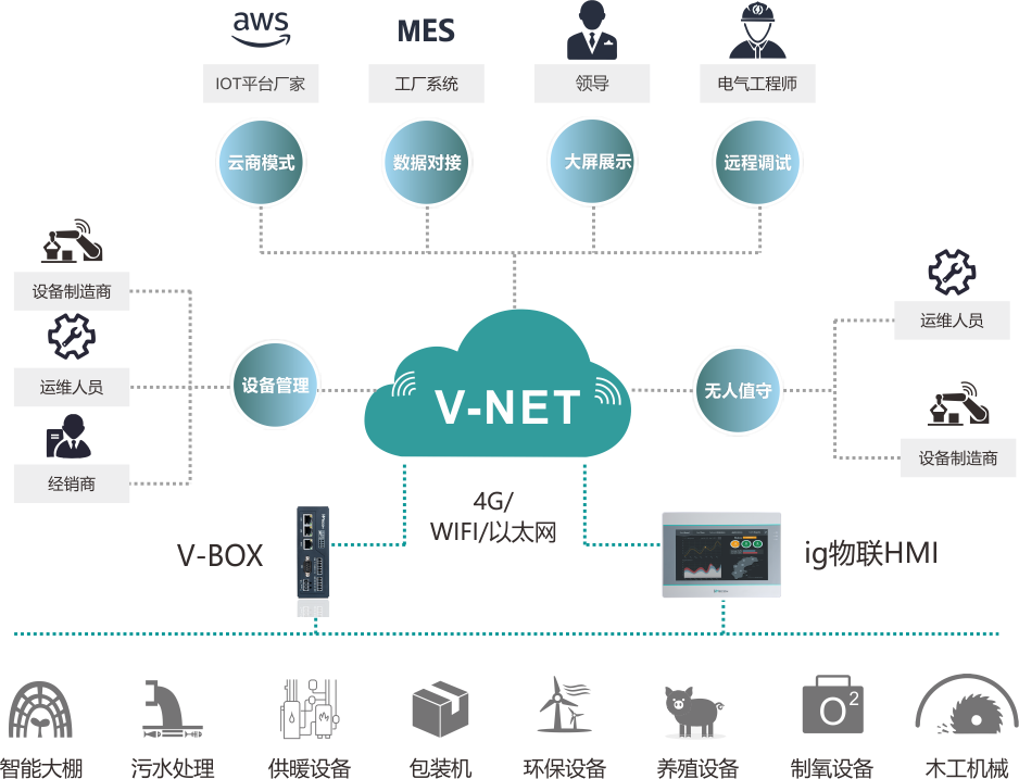 維控V-BOX具有體積小巧,輕松聯(lián)網(wǎng)的產(chǎn)品特點(diǎn);基于物聯(lián)網(wǎng)功能,將設(shè)備、人和系統(tǒng)連接在一起,是一種可實(shí)現(xiàn)智能化控制的工業(yè)智能網(wǎng)關(guān)。 維控V-BOX支持主流300+PLC驅(qū)動(dòng)協(xié)議,可通過(guò)4g/wifi/以太網(wǎng)多方式聯(lián)網(wǎng),采集設(shè)備數(shù)據(jù)。基于慧網(wǎng)云平臺(tái),用戶可在電腦、手機(jī)、大屏上對(duì)設(shè)備進(jìn)行遠(yuǎn)程監(jiān)控、遠(yuǎn)程調(diào)試、遠(yuǎn)程維護(hù),實(shí)現(xiàn)無(wú)人值守。