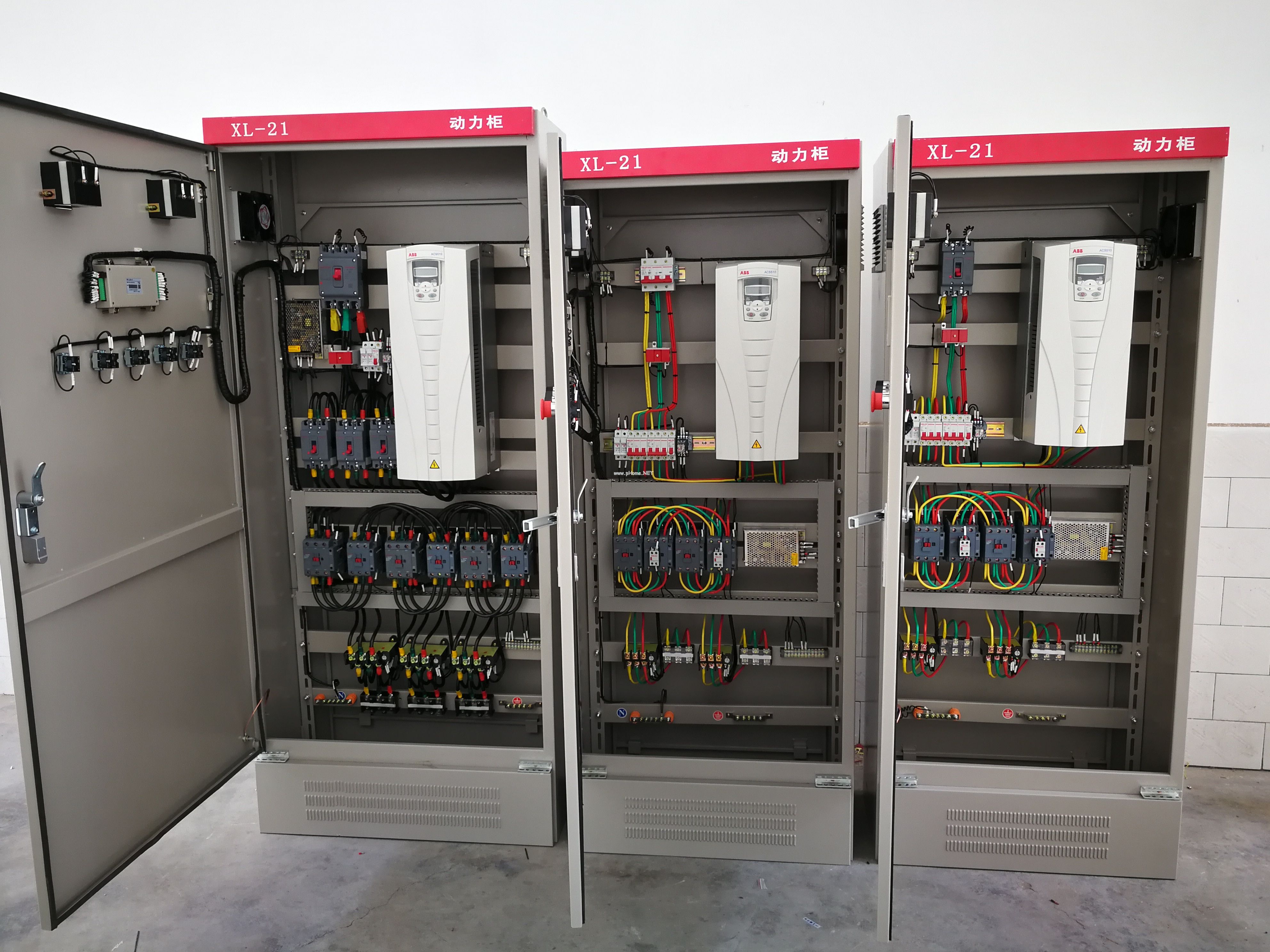 注:圖片為西安嘉迅機電科技有限公司生產的一拖一和一拖三變頻恒壓供水控制柜。變頻器為ACS510系列