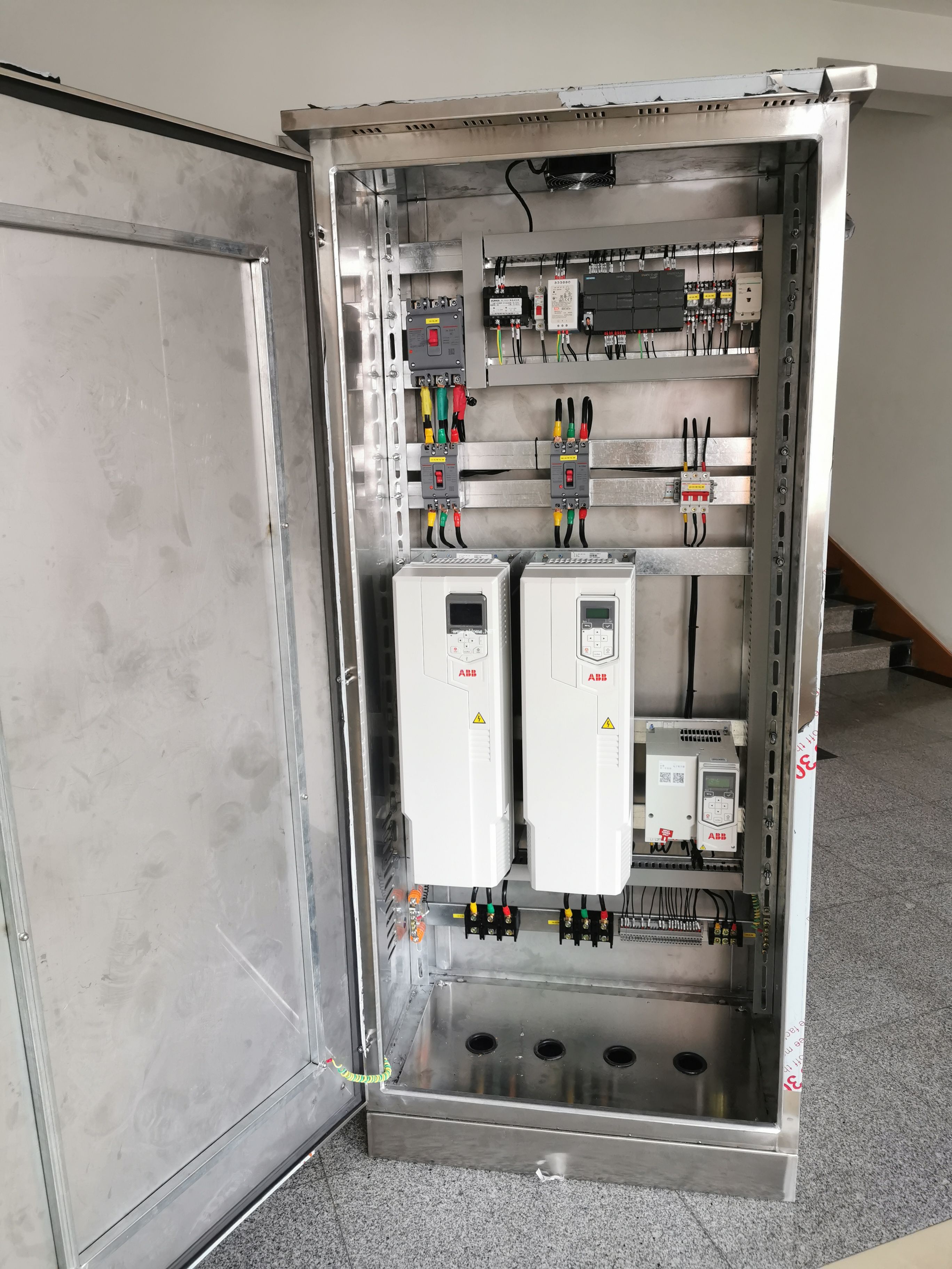 注:圖片為西安嘉迅機電科技有限公司生產的在污水處理行業應用的水泵控制柜。變頻器為ACS530系列