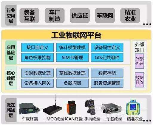 工業物聯網平臺包括網絡、管理組件和應用組件三個部分。網絡將來自接入層的各類信息通過基礎承載網絡傳輸到管理組件;管理組件為用戶提供一個可視化的系統管理、配置平臺,幫助用戶快速搭建物聯網應用系統的整個體系架構,以及提供支撐整個物聯應用系統運行的技術基礎,主要體現為快速的數據分析能力和事件處理能力。應用組件為用戶提供一個可視化的數據展現平臺,包括實時數據的展現,數據對比、關聯等基礎性的數據分析結果展現,以及事件告警;應用組件為用戶提供各種界定明晰的大數據應用API,方便用戶調用或集成,同時提供開放的API接口,實現用戶自己定義的應用模塊接入平臺。